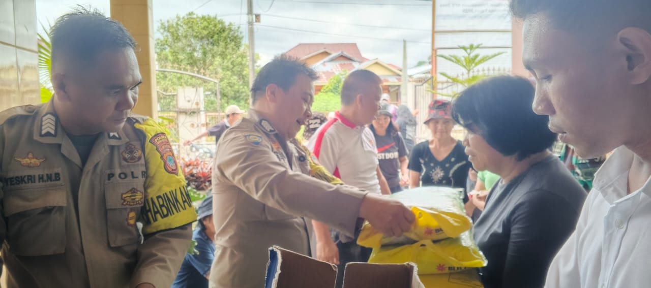 2.000 Kg Beras Ludes! Warga Langowan Berebut di Gerakan Pangan Murah Polres Minahasa