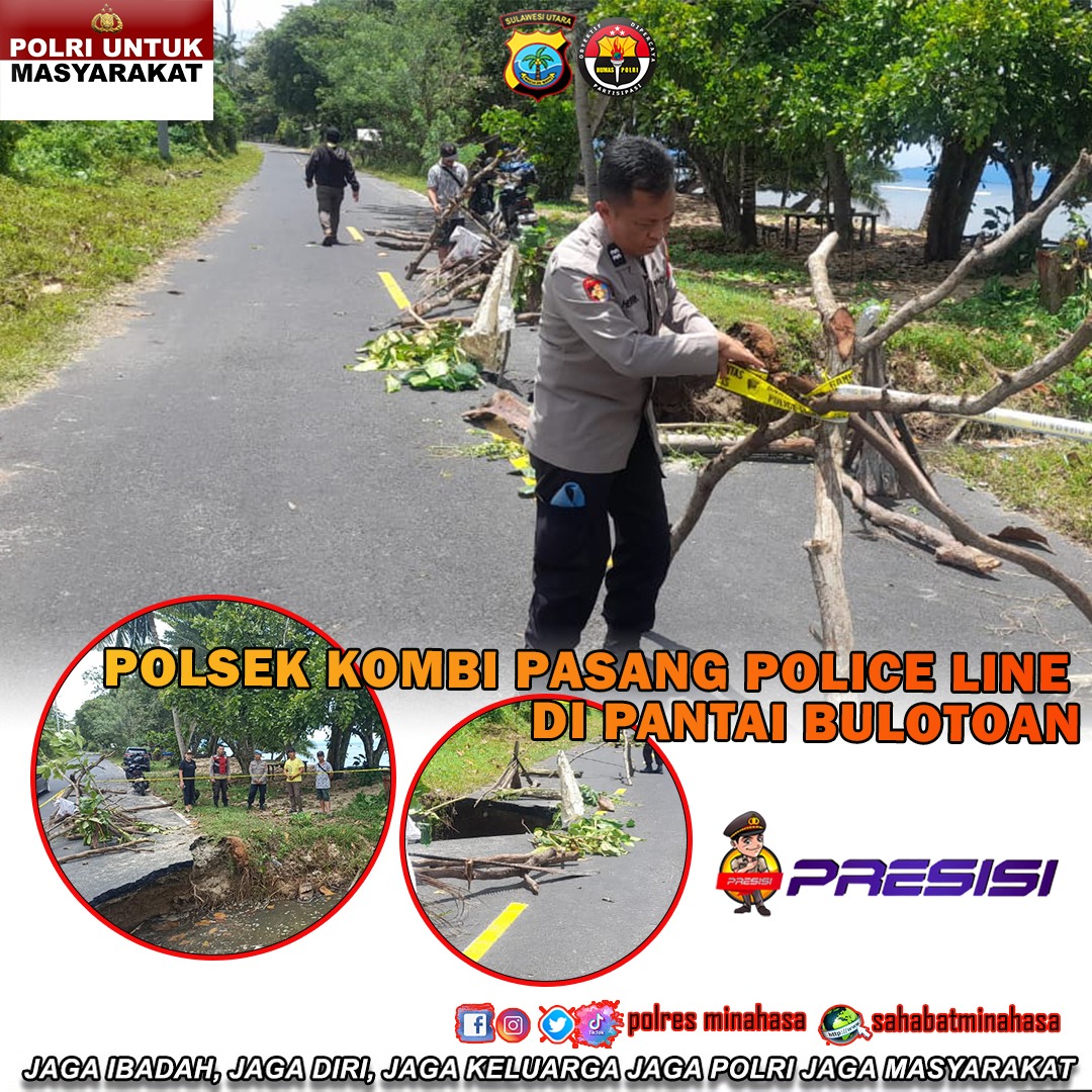 MINAHASA, ND – Dampak abrasi di pesisir Pantai Bulotoan, Desa Rerer 1, Kecamatan Kombi, semakin mengkhawatirkan setelah gelombang laut terus menggerus bagian jalan yang berada di dekat pantai. Menyikapi kondisi tersebut, personel Polsek Kombi melakukan patroli dan pemasangan garis polisi (police line) untuk mengamankan area yang terdampak longsor akibat abrasi pada Kamis (3/4) siang.
