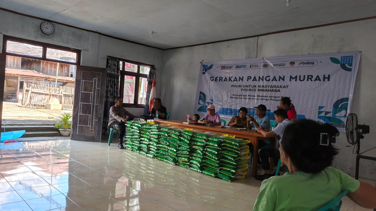 MINAHASA – Upaya menjaga stabilisasi pasokan dan harga pangan terus dilakukan Polres Minahasa melalui program Gerakan Pangan Murah (GPM). Pada Selasa (14/10/2025), bertempat di Kantor Desa Kinaleosan, Kecamatan Kombi, Polsek Kombi bersama Bulog Kanwil Sulawesi Utara melaksanakan kegiatan penyaluran beras Stabilisasi Pasokan dan Harga Pangan (SPHP) bagi masyarakat.