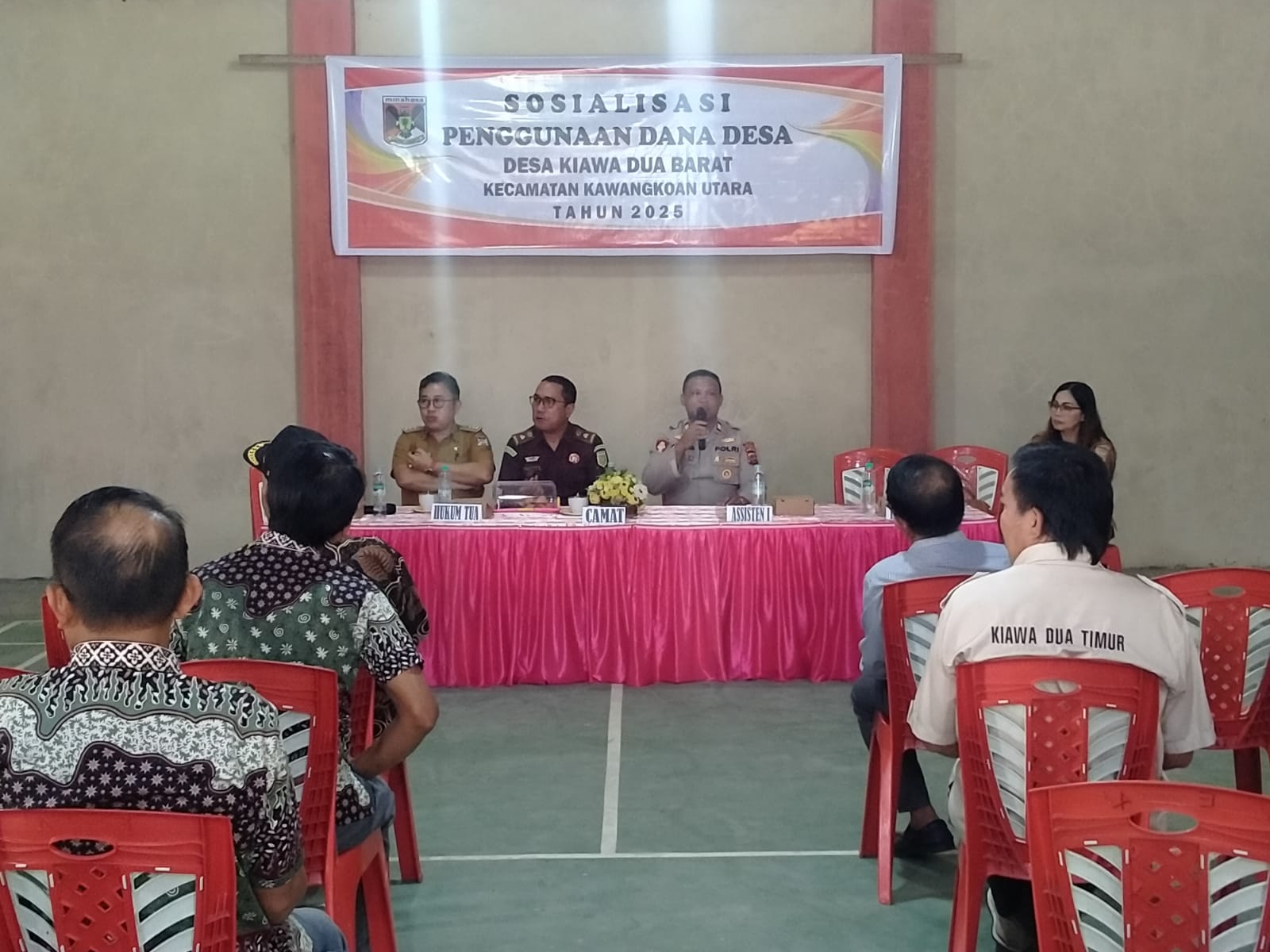 Kawangkoan Utara – Selasa (12/08/2025) pukul 11.00 Wita, bertempat di Balai Kemasyarakatan Desa Kiawa Dua Timur, dilaksanakan Sosialisasi Penggunaan Dana Desa Tahun 2025 untuk Desa Kiawa Dua Timur dan Desa Kiawa Dua Barat, Kecamatan Kawangkoan Utara. Kegiatan ini menjadi wadah penting bagi pemerintah daerah, aparat penegak hukum, dan masyarakat desa untuk memastikan tata kelola Dana Desa berjalan sesuai aturan.