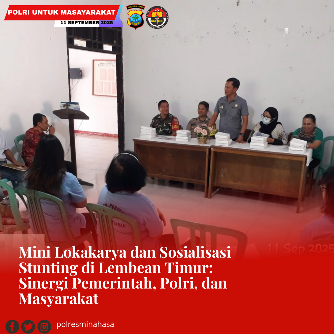 Minahasa – Upaya menekan angka stunting di Kabupaten Minahasa kembali digalakkan melalui kegiatan Mini Lokakarya yang dilaksanakan di Kantor Kecamatan Lembean, Desa Kapataran, Kecamatan Lembean Timur, pada Kamis (11/9/2025) pukul 11.00 WITA. Kegiatan ini menghadirkan sinergi antara pemerintah, tenaga kesehatan, aparat keamanan, dan masyarakat setempat.