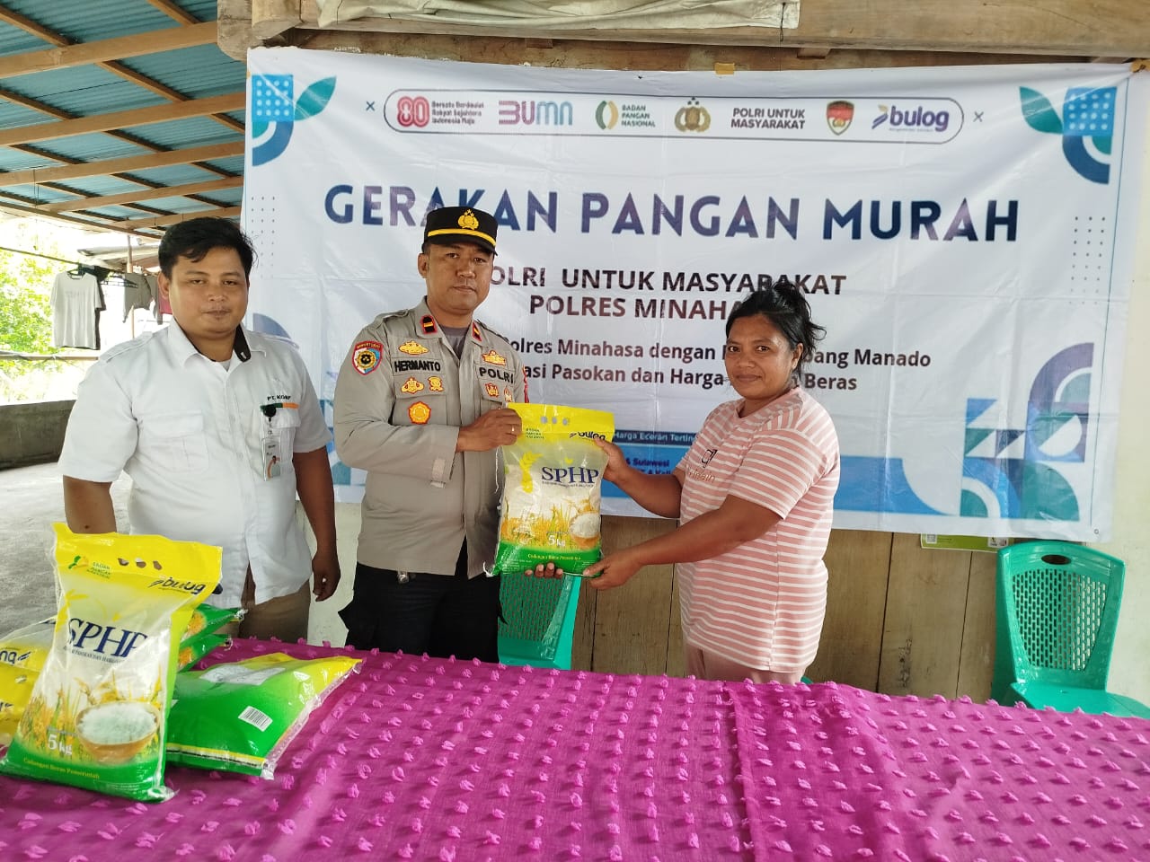 Polres Minahasa Gelar Gerakan Pangan Murah, 1 Ton Beras Bulog Ludes Terjual di Lembean Timur