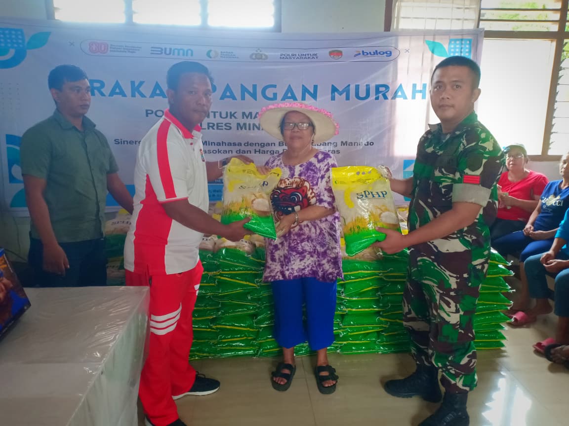 Polres Minahasa Gelar Gerakan Pangan Murah di Tompaso, 2.000 Kg Beras Habis Terjual