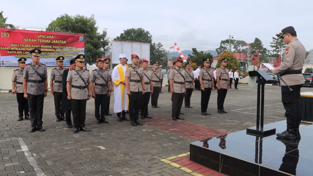 Minahasa – Kepolisian Resor (Polres) Minahasa menggelar upacara serah terima jabatan (Sertijab) sejumlah pejabat utama dan kapolsek jajaran pada Rabu (13/8/2025) pukul 15.40 WITA di Lapangan Upacara Polres Minahasa.