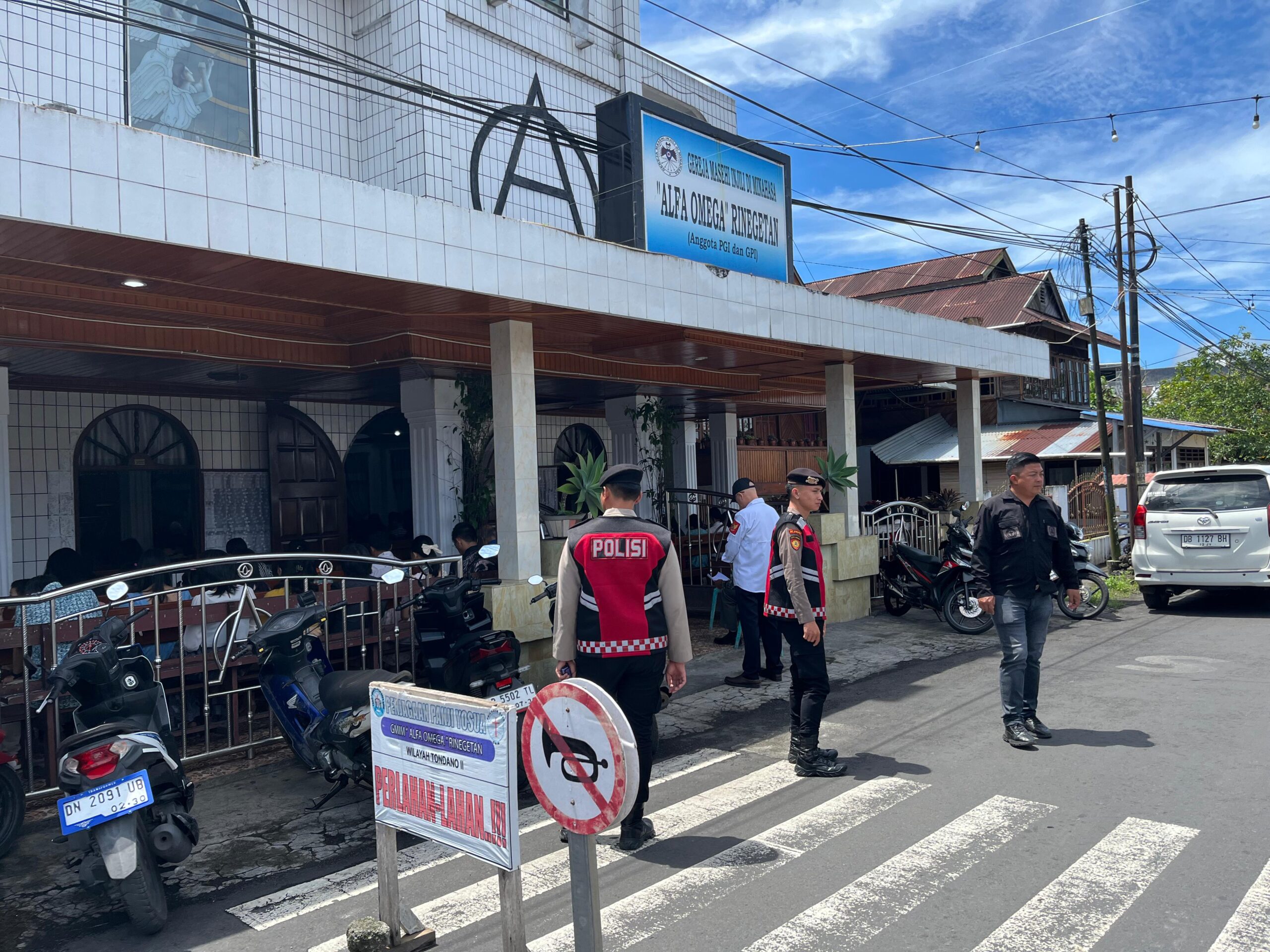 Selama pelaksanaan patroli, personil Sat Samapta Polres Minahasa melakukan pengamanan di sekitar area gereja, mengatur lalu lintas di sekitar lokasi ibadah, serta berkoordinasi dengan pengurus gereja untuk memastikan situasi tetap kondusif.