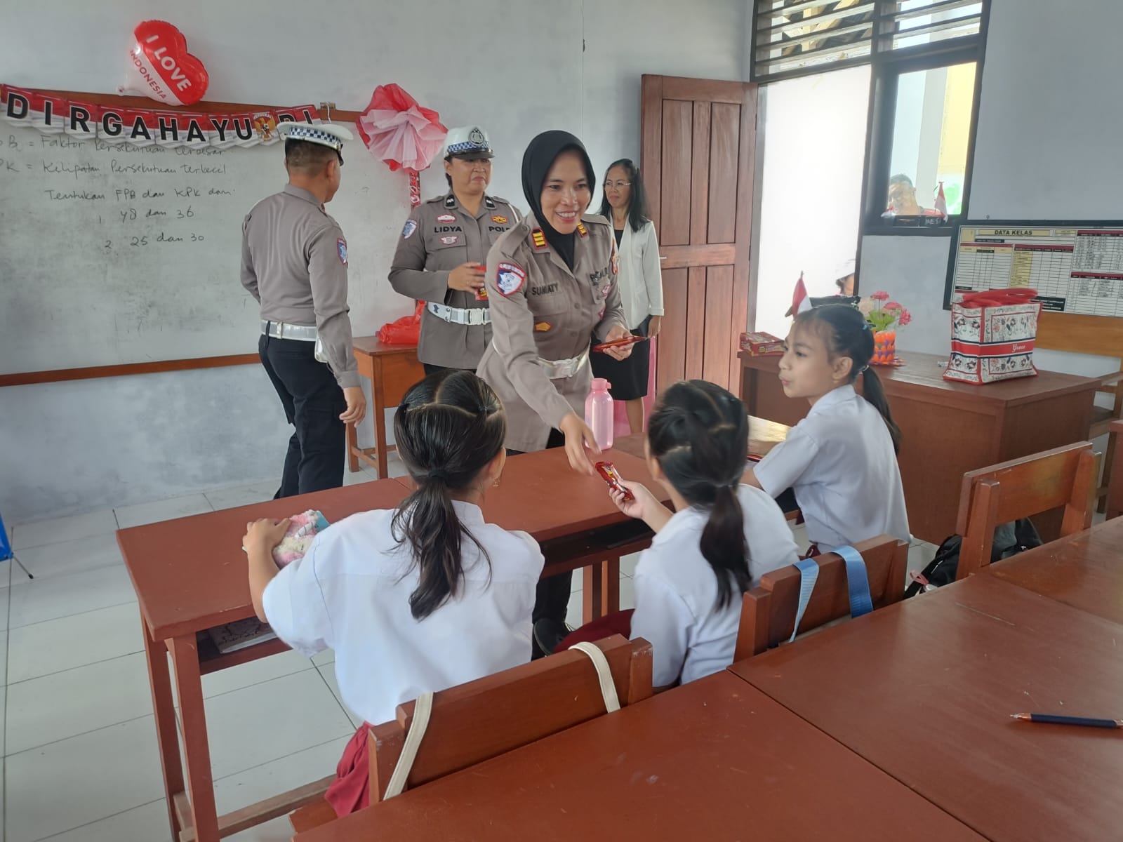 Kegiatan ini tidak sekadar berbagi kebahagiaan, melainkan juga menjadi sarana edukasi tentang pentingnya menjaga keselamatan di jalan raya. Kepada anak-anak SD Negeri 2 Tondano, personel Sat Lantas memberikan pengetahuan dasar berlalu lintas dengan cara interaktif melalui kuis-kuis sederhana. Cara ini disambut antusias oleh para siswa yang terlihat gembira sekaligus memahami pesan keselamatan sejak dini.