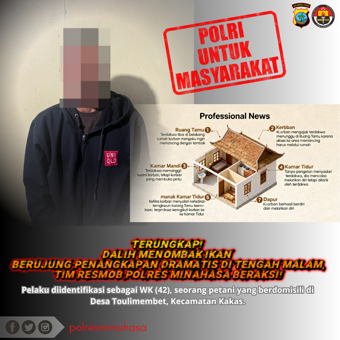Pelaku diidentifikasi sebagai WK (42), seorang petani yang berdomisili di Desa Toulimembet, Kecamatan Kakas. Penangkapan dilakukan pada Kamis (18/9/2025) sekitar pukul 23.25 WITA berdasarkan laporan dari masyarakat.